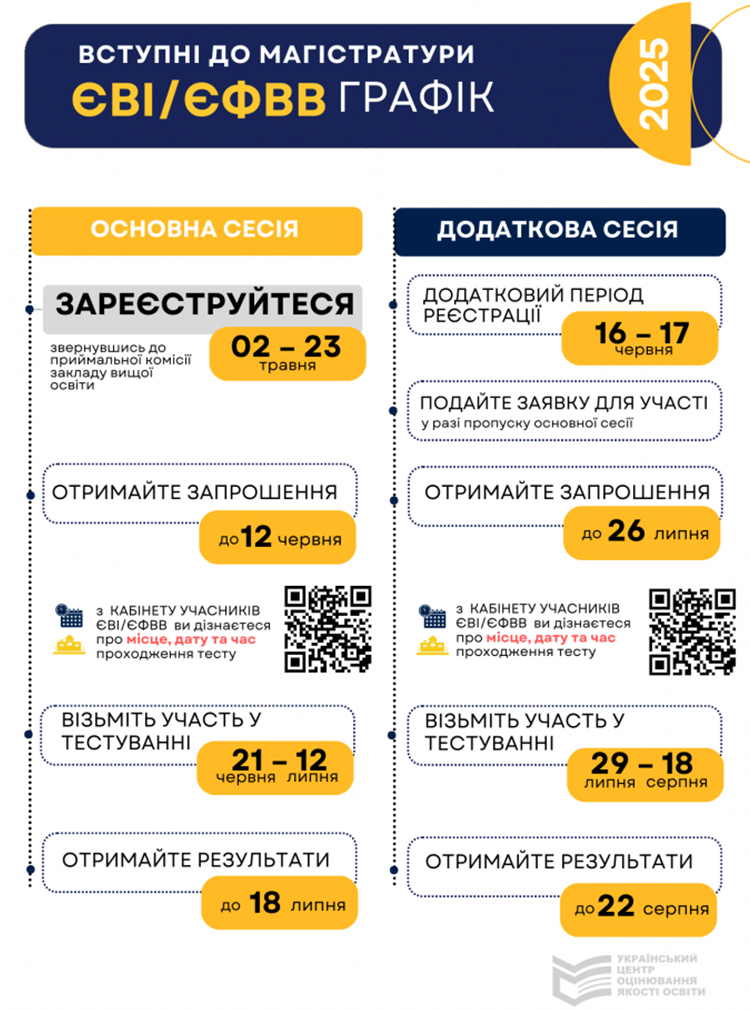 - основна сесія ЄВІ/ЄФВВ: 21 червня — 12 липня 2025 року;